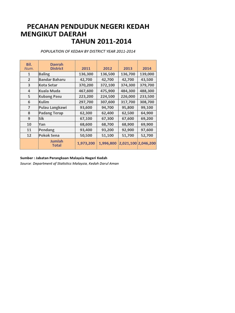 Pecahan Penduduk Negeri Kedah Mengikut Daerah Tahun 2011 2014 Pdf
